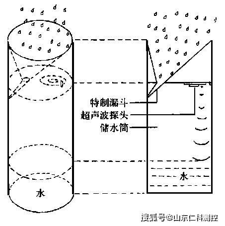 根據(jù)超聲波測(cè)距原理,利用高精度超聲波探測(cè)雨量桶內(nèi)水面高度的變化,由承雨器、特制漏斗、超聲波測(cè)距探頭、換桶控制開(kāi)關(guān)、外接電纜、儲(chǔ)水桶等上、下兩部分組成,當(dāng)有液態(tài)降水時(shí),雨水落入承雨器內(nèi),經(jīng)特制漏斗沿儲(chǔ)水桶壁流入桶內(nèi),可避免因水建起水波而影響精度。根據(jù)超聲波測(cè)距原理,選用高精度的超聲波探頭,對(duì)雨量器內(nèi)的水面高度進(jìn)行測(cè)定,并轉(zhuǎn)換成電信號(hào)輸出。超聲波探頭每分鐘對(duì)液面進(jìn)行一次觀測(cè)并計(jì)數(shù),數(shù)據(jù)經(jīng)采集器傳入主機(jī),計(jì)算機(jī)程序?qū)邓涗涀詣?dòng)分析可挑出5,10……1440分鐘供15個(gè)時(shí)段的將數(shù)量。