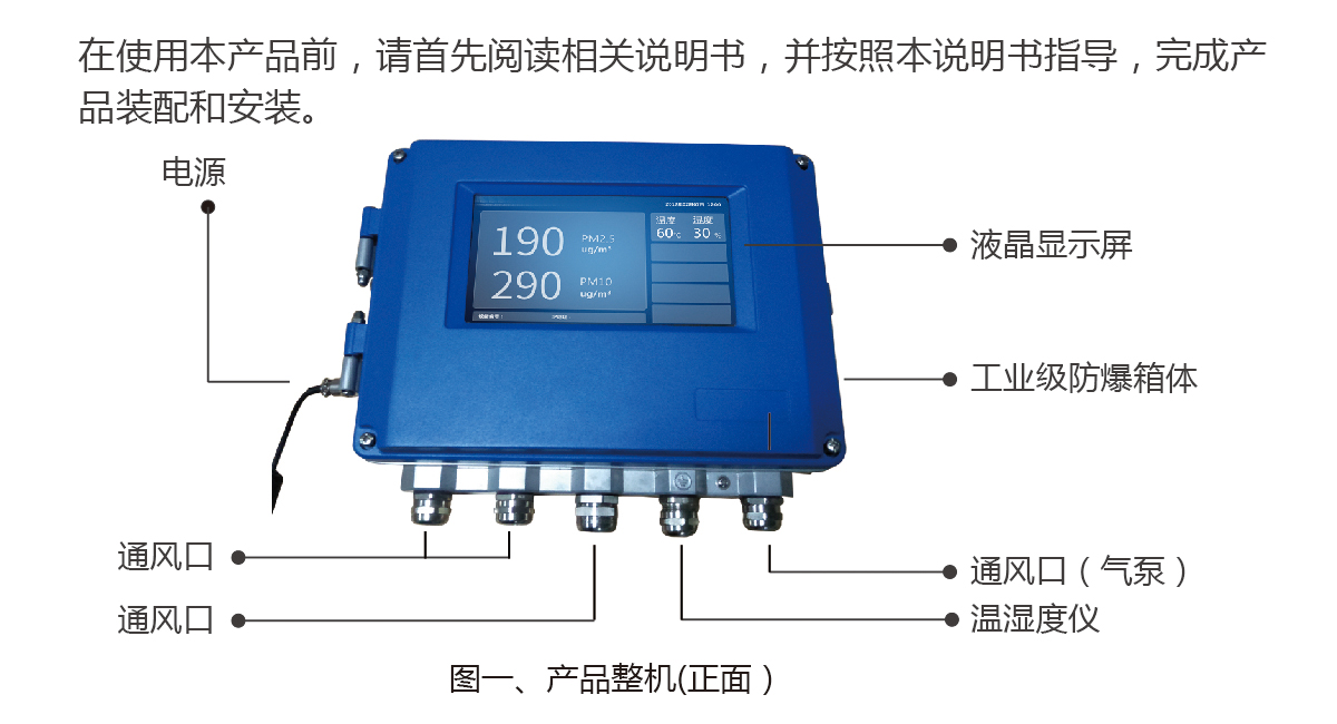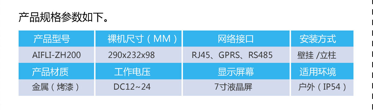 2、監測數據展示;產品可選配內嵌7寸液晶顯示屏,監測數據實時顯示;同時,也提供了數據接口,可供用戶接入各類顯示屏。