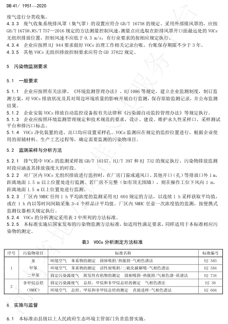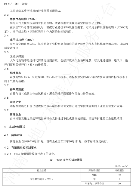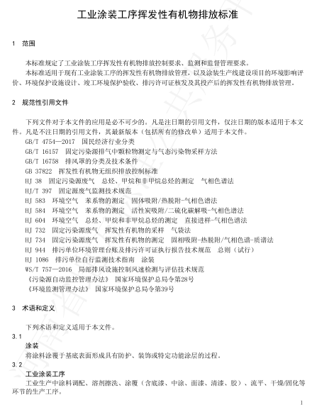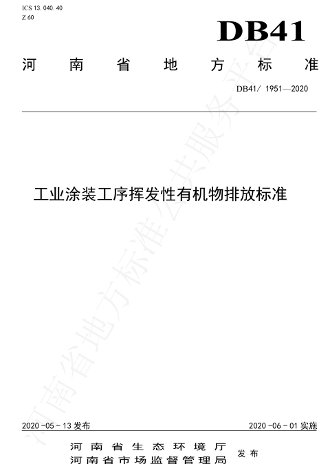 河南省工業涂裝工序揮發性有機物VOCS排放標準