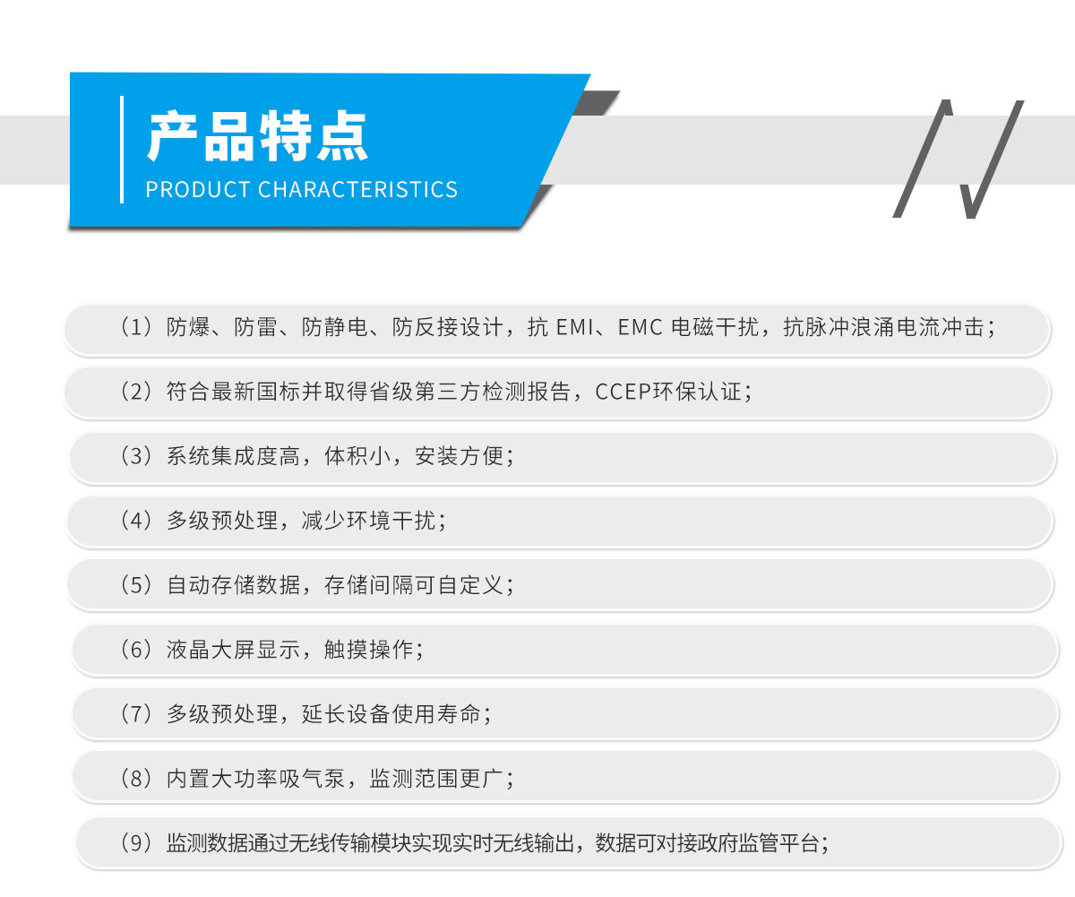 ⊙ 可實時、連續、長期運行、操作簡單、維護方便、運行成本低